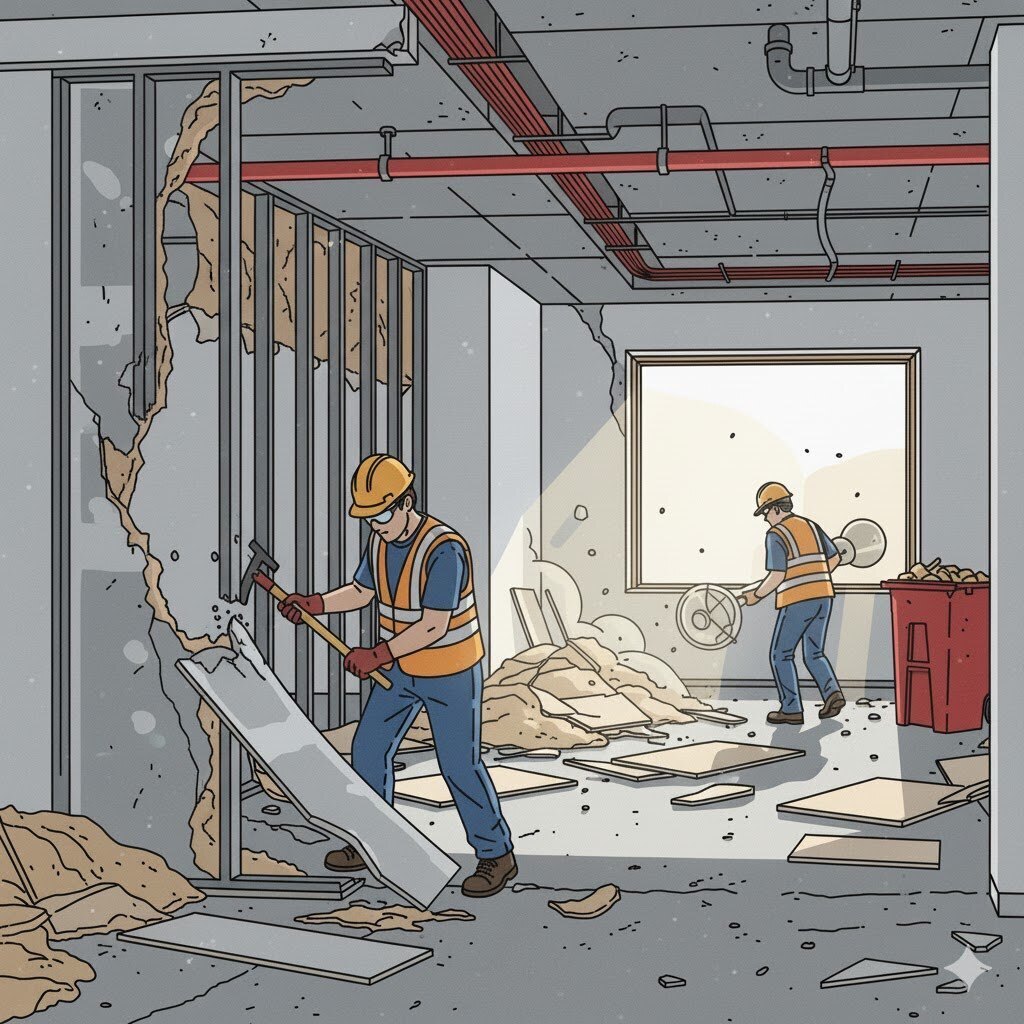 内装解体は基本的に手作業や小型の機械を使うことが多いので、騒音や振動を最小限に抑えやすい